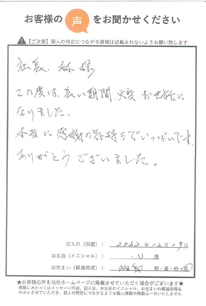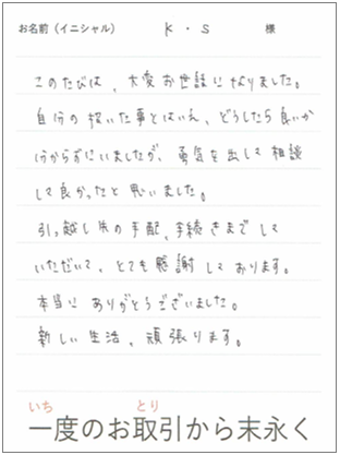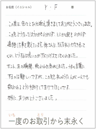 当社で任意売却に成功されたご相談者様よりいただきましたお声をご紹介いたします!